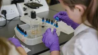 School pupils conducting a science experiment as part of the Castlebrae Superlab.