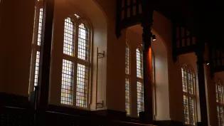 Many of the building's stained-glass windows have been refurbished and restored by skilled artisans.